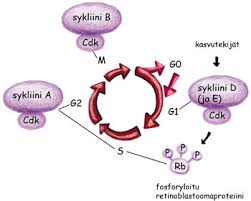 Cykliner och cykline-dependent kinases (Cdk) reglerar cellcykeln i olika skeden. Det finns olika cykliner som har olika associerade kinaser (Cdk). Reglering av cdk/cyklin-komplexet sker genom: